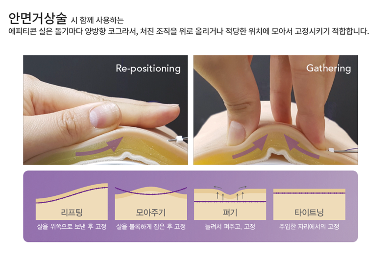 안면거상술 시 함께 고려되는 ‘에피티콘 실’은 무엇일까? 안면거상술을 알아보다 보면 "실도 같이 사용하나요?"라는 질문을 자주 받게 됩니다. 그중에서도 많이 언급되는 것이바로 에피티콘 실입니다. 어떤 목적에서 어떤 경우에 활용되는지를 정확히 이해하는 것이 중요합니다.에피티콘 실, 단순한 실리프팅과는 다릅니다. 에피티콘 실은 피부를 단순히 "당겨 올리는 용도"보다는 조직을 안정적으로 지지하고 고정하는 역할을 초점을 둔 실입니다.그래서 단독 리프팅 시술로 사용되기보다는 안면거상술 과정에서 처진 조직을 정리한 뒤 위치를 보다 안정적으로 유지하기 위한보조적 수단으로 함께 고려되는 경우가 있습니다.안면거상술에 에피티콘 실이 함께 사용되는 이유는? 안면거상술은 피부뿐 아니라 처짐의 원인이 되는 구조를 함께 정리하는 수술입니다. 이 과정에서 에피티콘 실은 정리된 조직이 안정적으로자리 잡도록 돕고 회복 과정 중 불필요한 움직임을 줄이는 데 도움이 될 수 있습니다. 특히 하안면 처짐이 뚜렷한 경우, 턱선 라인을 보다 정돈하고싶은 경우 개인의 조직 특성상 추가적인 지지가 필요한 경우에 선택적으로 고려됩니다.모든 안면거상술에 실이 사용될까? 중요한 포인트는 모든 안면거상술에 에피티콘 실이 사용되는 것은 아니라는 점입니다. 처짐의 정도, 피부 두께와 탄력, 얼굴형과 근육 사용 패턴, 수술 계획 범위에 따라 실 사용 여부는 달라질 수 있습니다. 그래서 상담 과정에서는 "실을 꼭 써야 하나요?"보다는 지금 내 상태에서 필요한보완 요소가 무엇인지를 중심으로 접근하는 것이 현실적입니다.안면거상술을 계획할 때 실 사용을 하나의 "패키지"처럼 정해두기보다는 기본 수술 구조 설계, 얼굴선 변화 목표, 회복 과정의 안정성을 먼저 고려한 뒤 필요한 경우에 한해 에피티콘 실을 보완적으로 활용합니다. 이는 변화의 크기보다 자연스러운 인상과 회복 과정의 균형을 중요하게 보기 때문입니다.